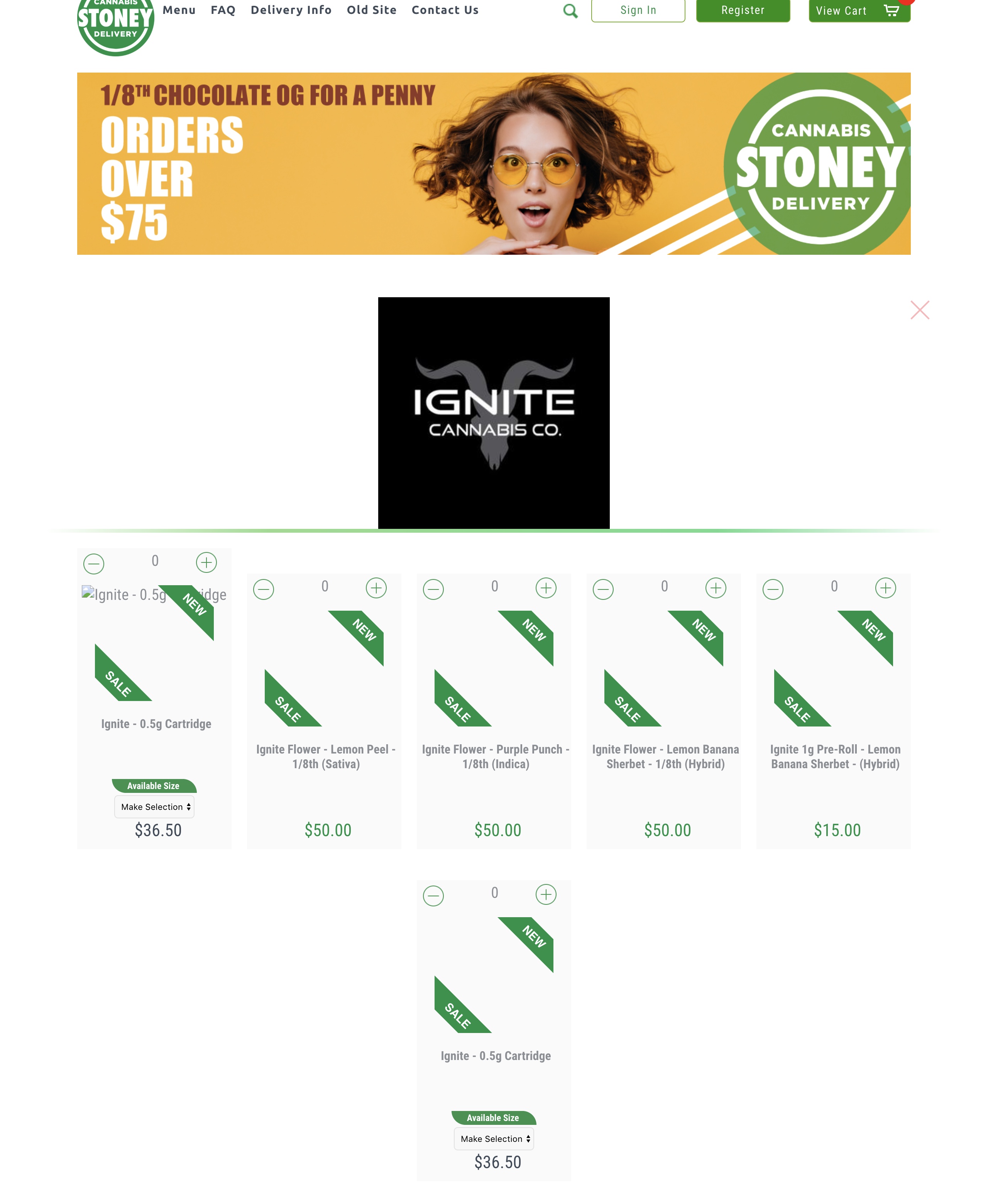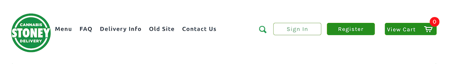 Image C (see image below): The navigation header consists of Menu, FAQ, Delivery Info, Old site, Contact Us, Sign in button, Register button, and Cart button.